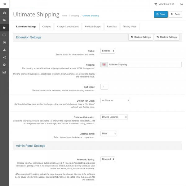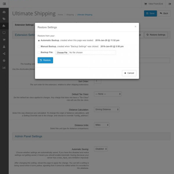 - Enjoy peace of mind: all settings are automatically saved to the database when changed, and are backed up to a backup file every time the admin panel is loaded. Settings can also be manually backed up, and then downloaded to restore from later, or to edit in a spreadsheet application.