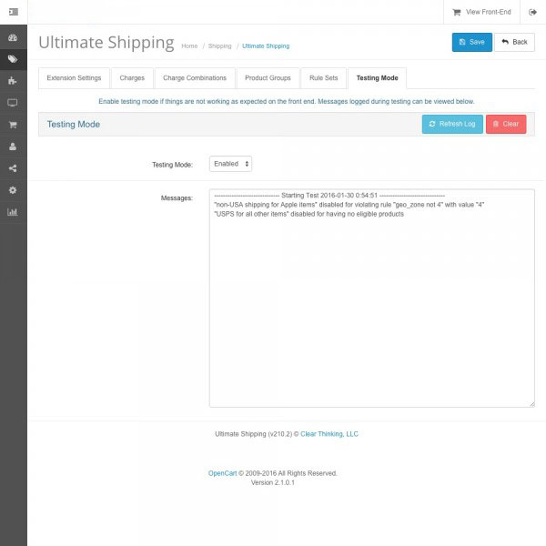 - Use the included Testing Mode to determine why charges are not appearing on the front-end, helping to debug complex rule interactions.